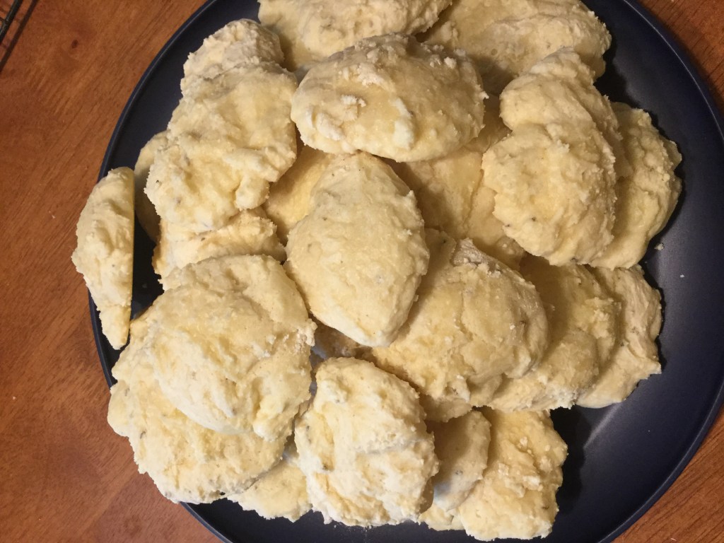 Yum! I was doubtful about these cookies but they are delightful. I like how they’re not super sweet and nice and fluffy. The instructions said to dry out the dough overnight, but I didn’t have time for that.