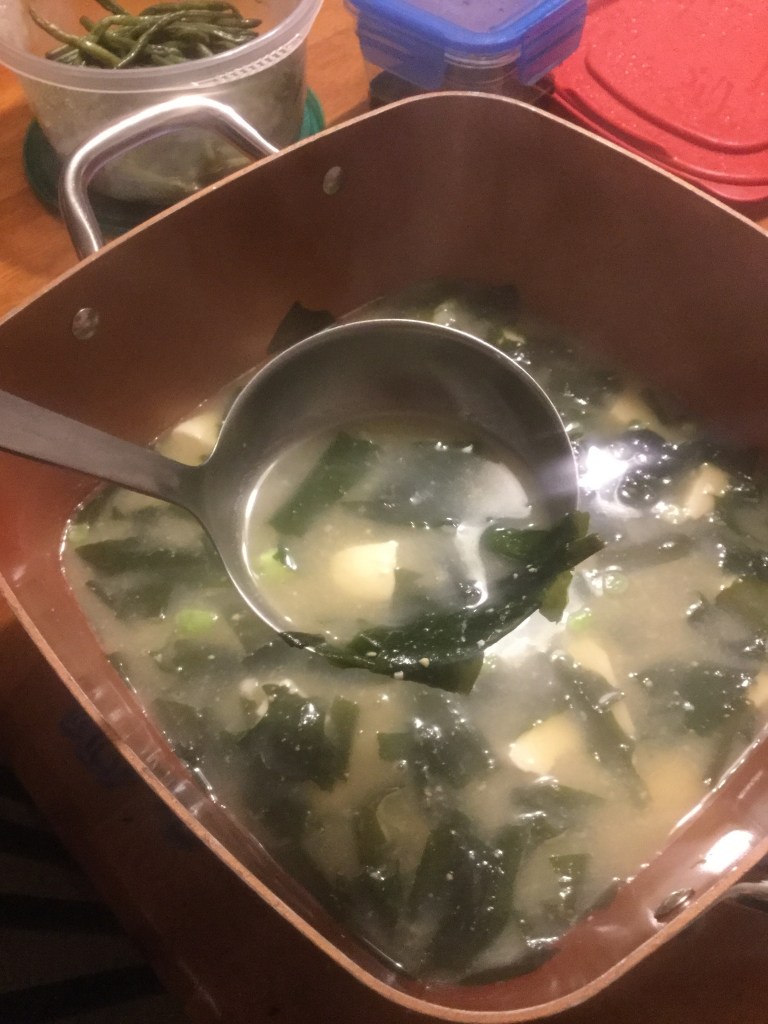 I really enjoyed this. I’ve made miso soup before from the instant packet and other than taking a couple extra steps, this soup was just as easy to make as opening a packet. I really loved the smell when you add miso to the warmed dashi. While I enjoyed this soup, the boyfriend did not, but he wasn’t a super big fan of texture. I’m used to eating lukewarm miso soup before enjoying sushi so it was nice to be able to control the temperature of the soup.