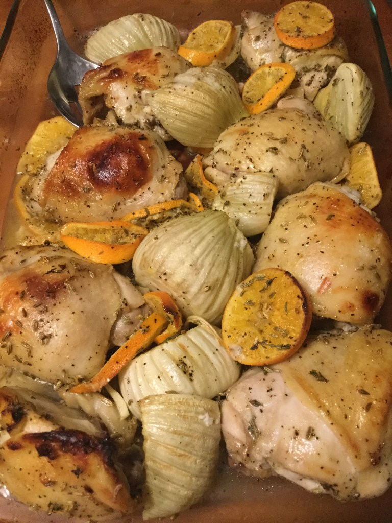 I changed 2 things from the original recipe. I didn’t have arak on hand, but I did have Pernod and the authors included that that would be an acceptable spirit to use instead. I also didn’t see clementines when I was shopping at Trader Joe’s, so I picked up mandarins instead since they’re similar in size and clementines derive from mandarin oranges. I thought the chicken thighs were super moist. I also loved the anise and orange chicken sauce that the dish made. The fennel could have cooked a little longer, but it was a pretty pleasant dish.
