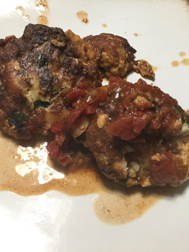 You can find the recipe here as well as some background information. Also that picture is sooo much better than mine. I thought about taking a picture of the entire dish in the pan but some of the cakes fell apart and weren’t as pretty. Enjoy the professionally photographed picture instead!