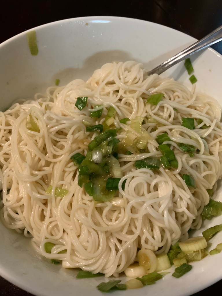 This is a tasty and very easy side dish to make. The most work you’ll need to do is chop up a bunch of green onions. I cheated and used ground ginger instead of grating fresh. I bet fresh ginger would be super lovely. I used somen noodles that I bought from my local Asian market. My boyfriend also enjoyed it since he loves soft noodles. This is also a super cheap dish to make, plus I love noodles.